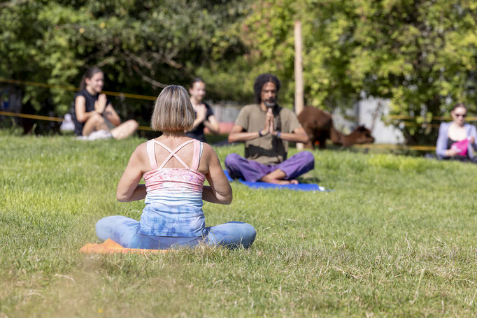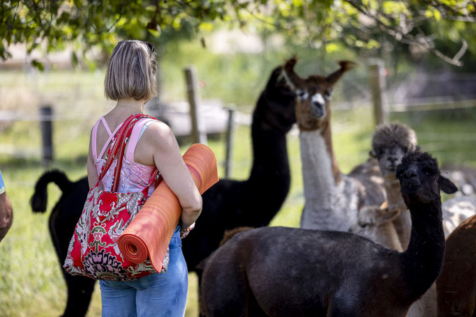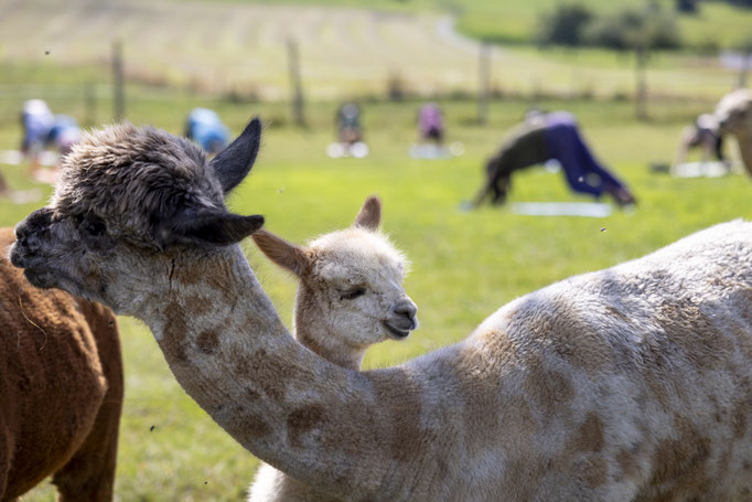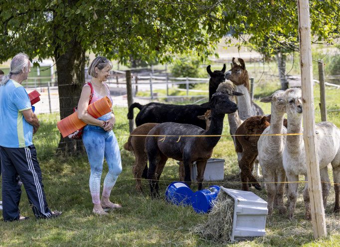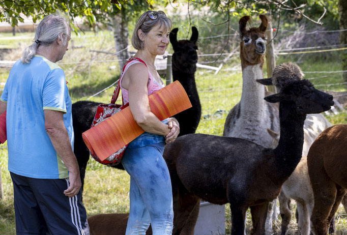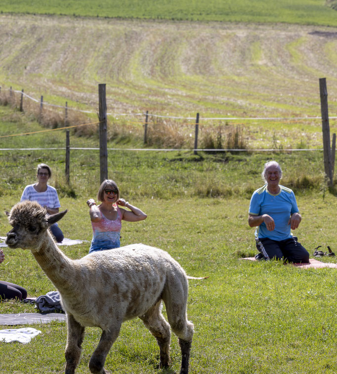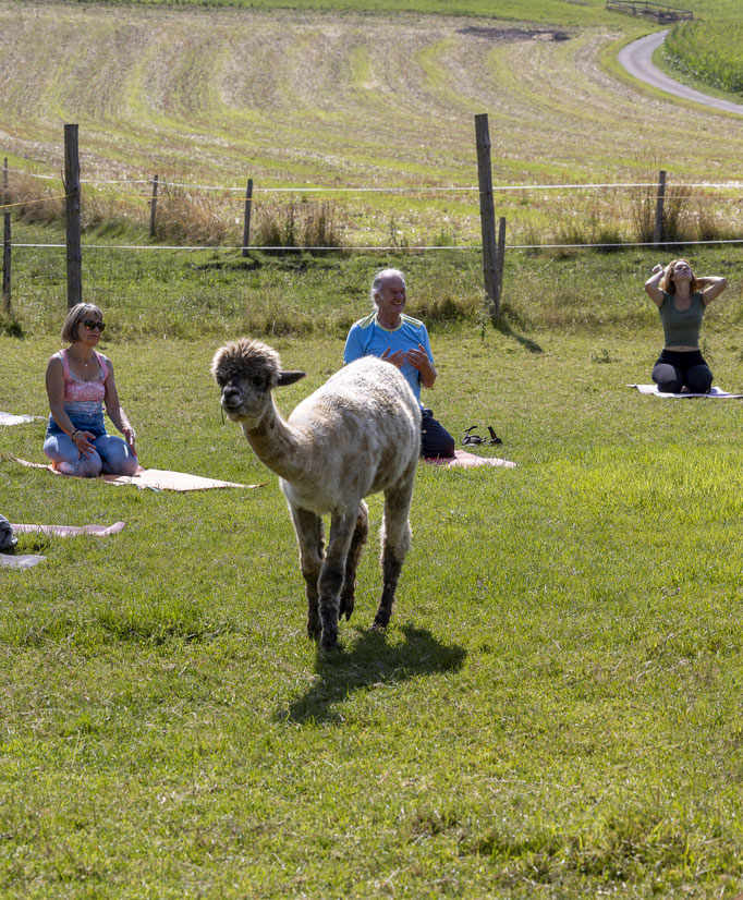 Alpaka Yoga auf dem Hof in Theilingen am Sonntag, 20. Juli 2025